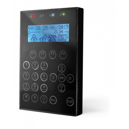 Πληκτρολόγιο με πλήκτρα αφής, γραφική οθόνη και οπίσθιο φωτισμό, σε μαύρο χρώμα.