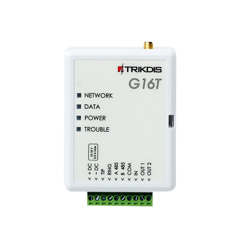 Το Trikdis G16T είναι μια συσκευή επικοινωνίας μέσω GSM/GPRS για αποστολή σημάτων συναγερμού σε κεντρικό σταθμό (ΚΛΣ), επίσης έχει τη δυνατότητα διαχείρισης μέσω εφαρμογής(Protegus) για όπλιση/αφόπλιση και λήψη ειδοποιήσεων απο το σύστημα συναγερμού.